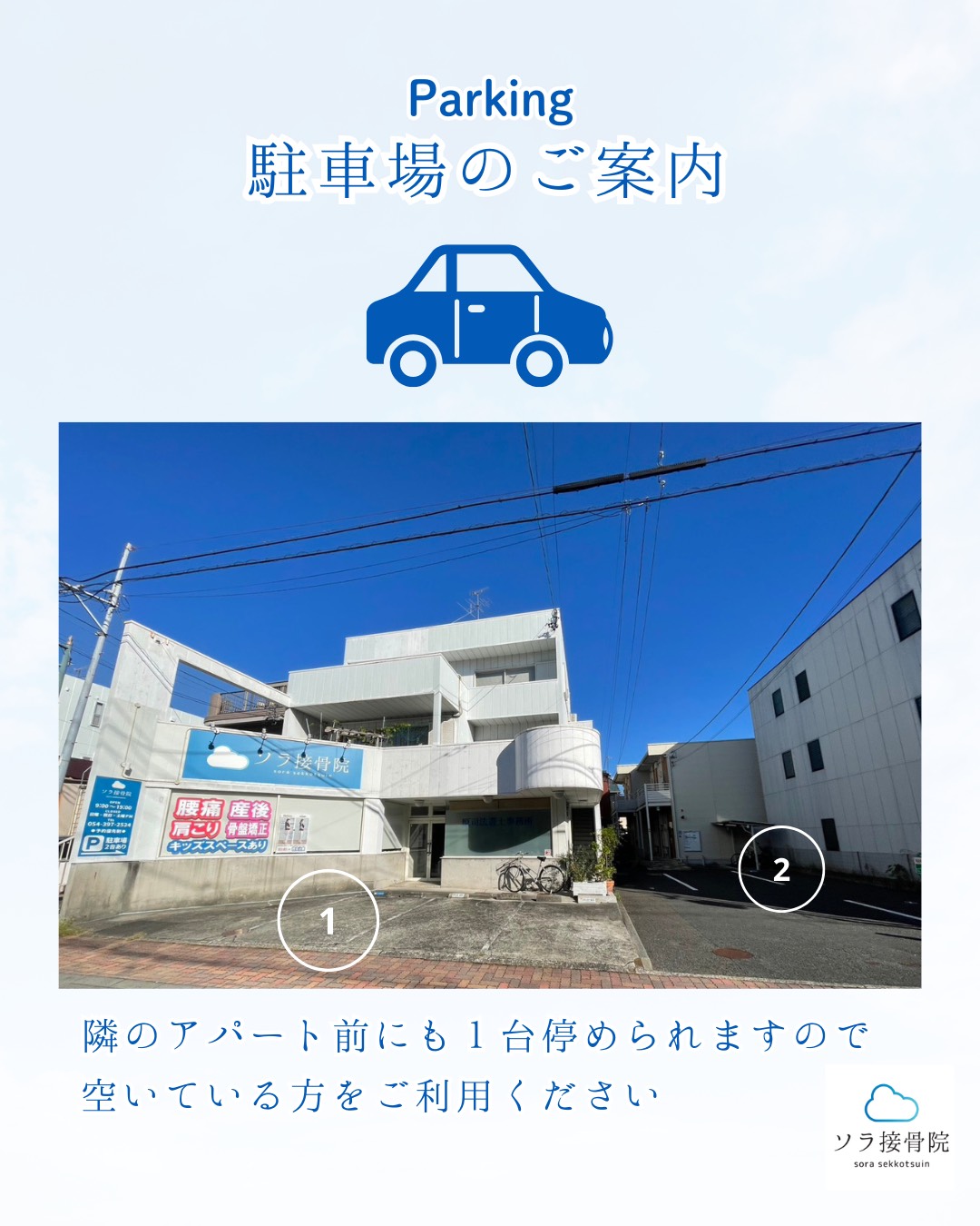 ソラ接骨院は2台分の駐車場が有ります。
